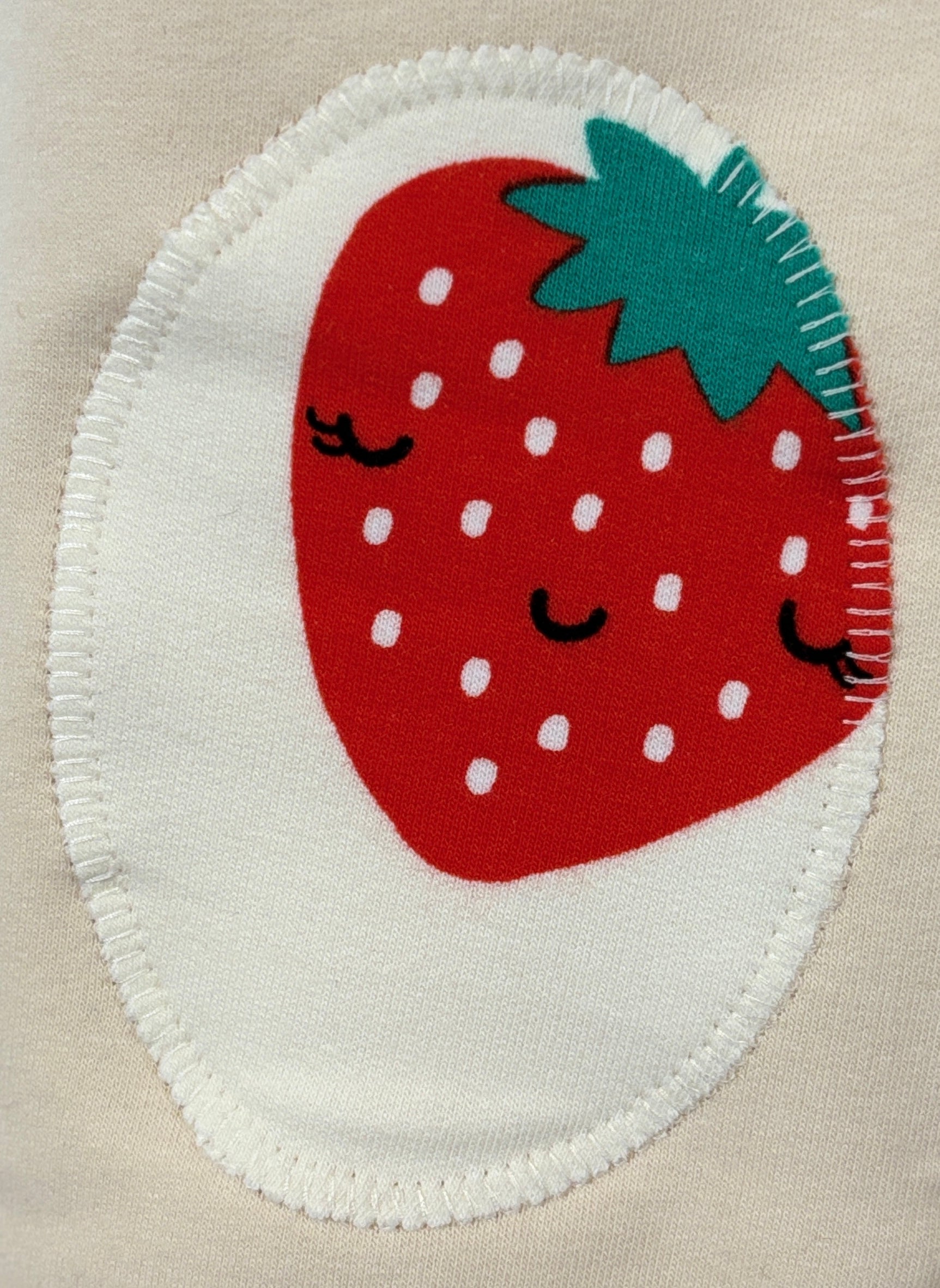 Pantalone lungo in cotone biologico felpato con toppe – Color Panna con toppe con le fragole
